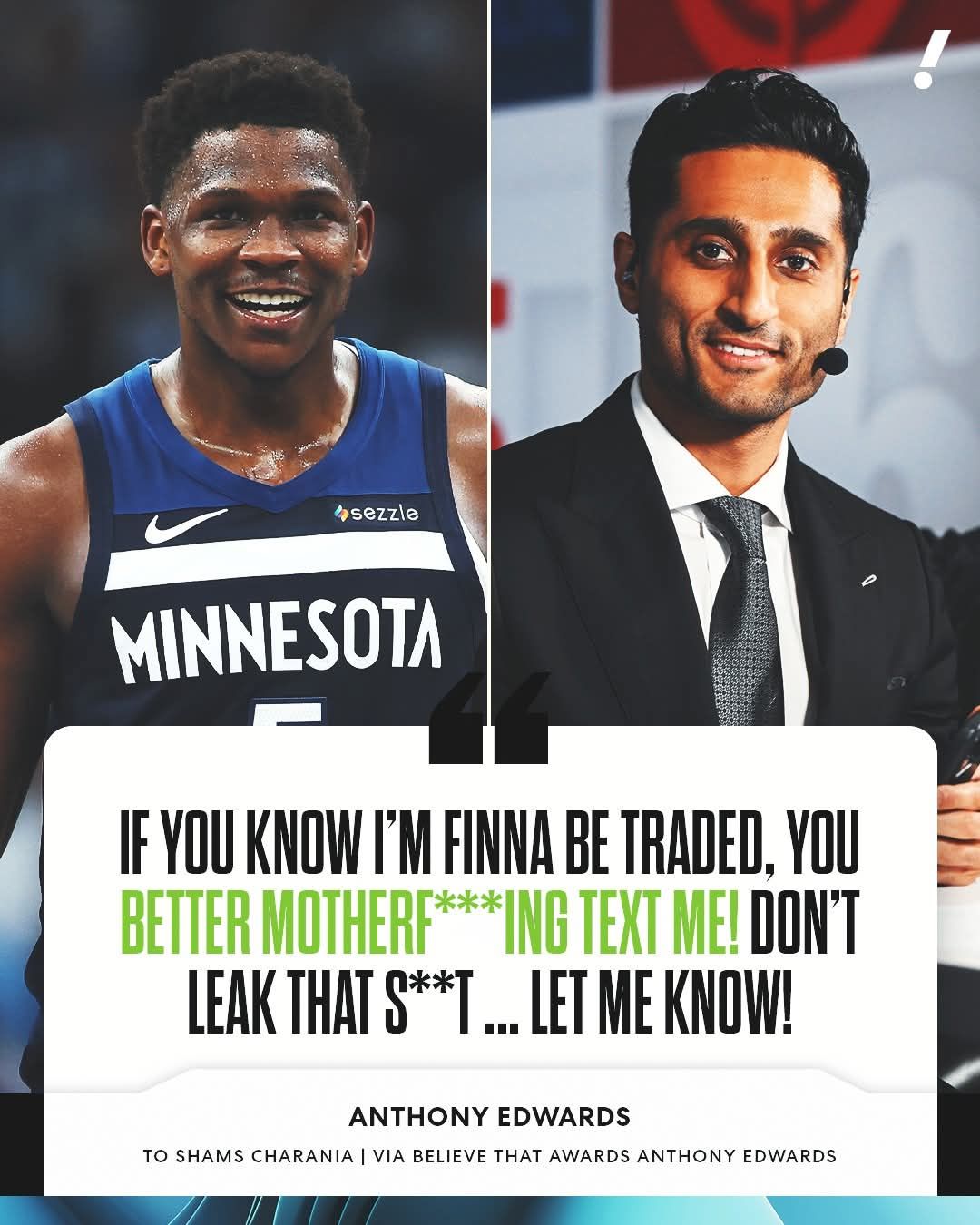 So when he sat down across from Shams that afternoon, the message was simple. Direct. There was no preamble, no small talk. Ant looked him square in the eyes and said, “If I ever get traded, you better tell me before I see it on Twitter.”