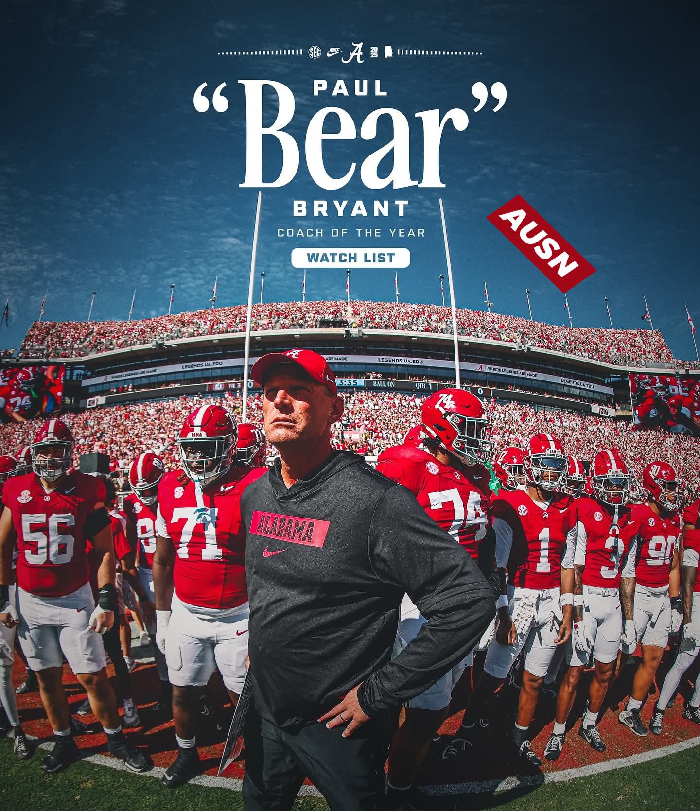 Being named to the watch list is itself an achievement, but it also sets in motion heightened scrutiny. From here until the final recipient is announced on January 21, 2026, during the awards ceremony in Houston, DeBoer’s every move — every game result, every injury management decision, every tactical adjustment — could factor into whether he moves from “watch list candidate” to “finalist” to “winner.” The watch list is determined by the National Sports Media Association alongside the Bryant Awards’ Executive Leadership Team and the Bryant family.