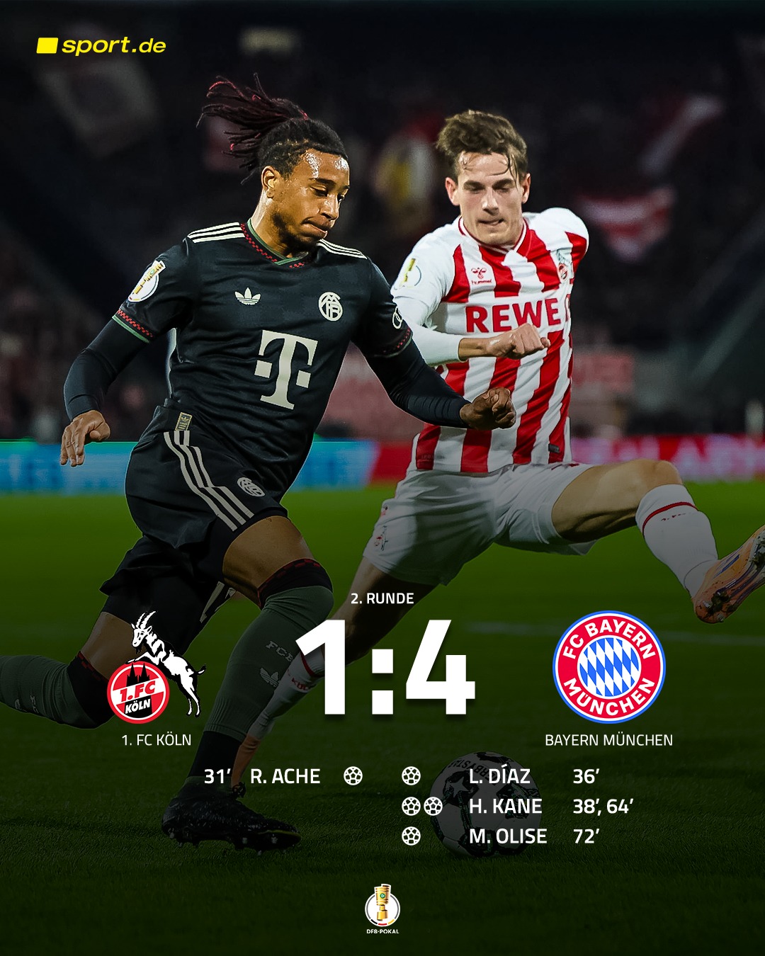 Trainer Vincent Kompany hat sich mit seinem Team in dieser Saison als nahezu makellos erwiesen. Die Serie wurde durch den Sieg gegen 1. FC Köln im DFB-Pokal manifestiert. In dem Spiel lagen die Bayern zunächst zurück – Köln ging in der 31. Minute in Führung durch Ragnar Ache. Doch Bayern schlugen zurück: Kurz vor der Halbzeit glich Luis Díaz aus, anschließend erzielte Harry Kane mit einem spektakulären Treffer das 2-1, später per Kopf das 3-1 und schliesslich war auch noch ein weiterer Treffer dabei. Kane alleine sorgte damit für einen großen Anteil dieser Erfolgsgeschichte. Laut Berichten hatte er nach diesem Spiel schon 22 Tore in 14 Spielen auf dem Konto